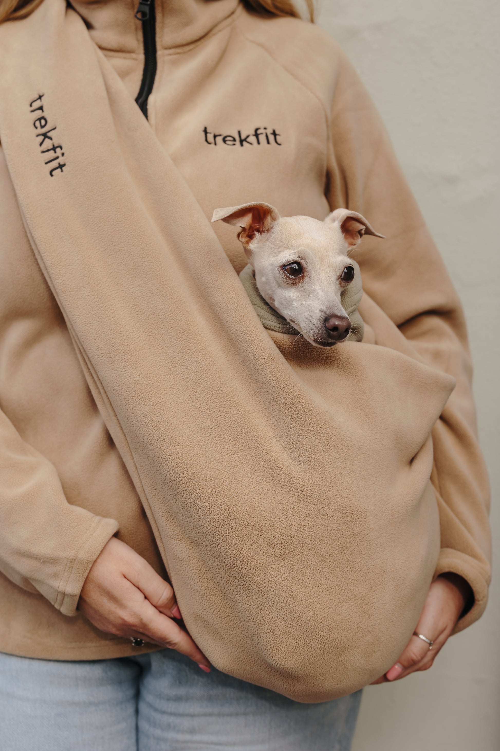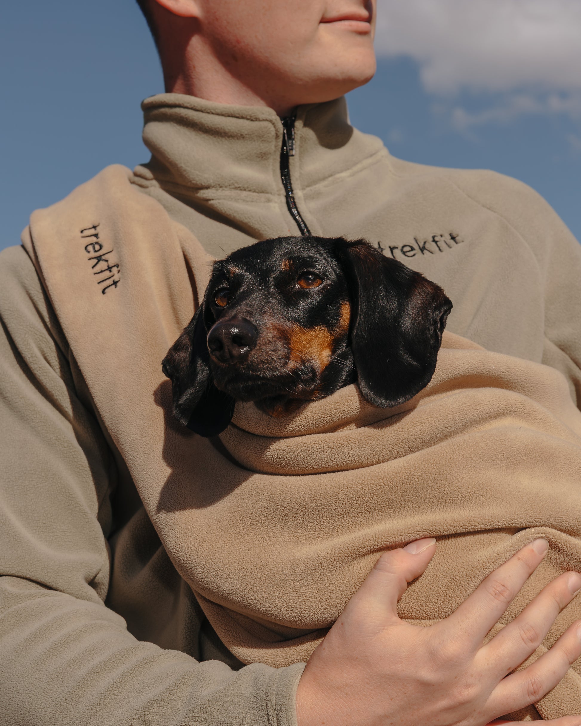 Ideal for autumn and winter, the sling provides warmth and security for smaller dogs, while coordinating seamlessly with our dog fleeces and human zip-ups for a cohesive, stylish look.